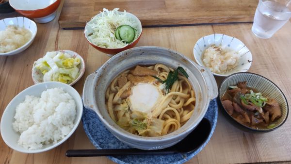 味噌煮込み鍋焼きうどん・もつ煮付きです。お~!美味そう。