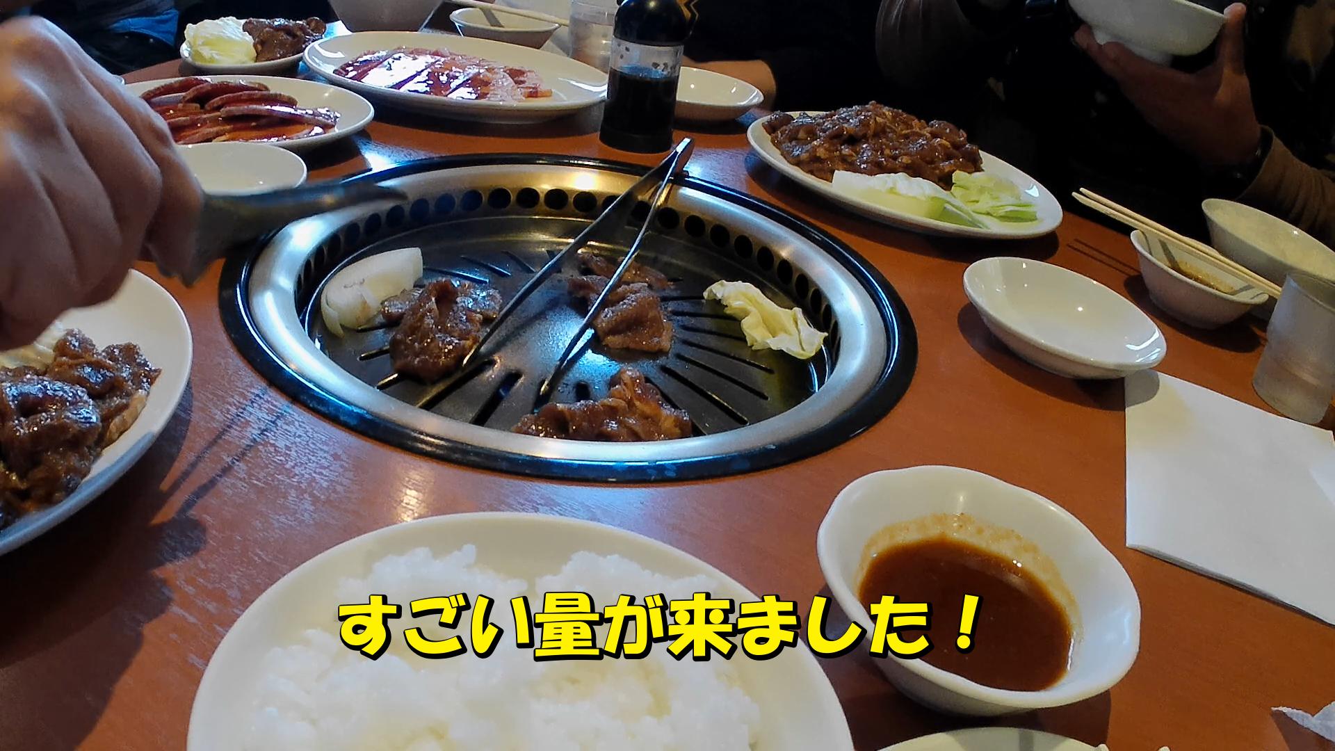 私とT島さんは1人前980円で頼みましたが、S森さんは満腹コース?値段は倍ですが量は2.5倍との事!Y本さんは二種類乗っている皿が来ました。その他に牛カルビ皿と、後なんだっけ?とにかくすごい量が。