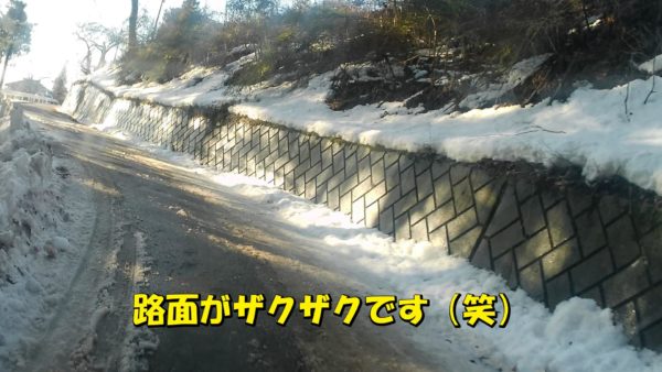 自宅周辺まで帰ってきました。私の家の周辺も雪だらけです。路面もザクザクしています(笑)