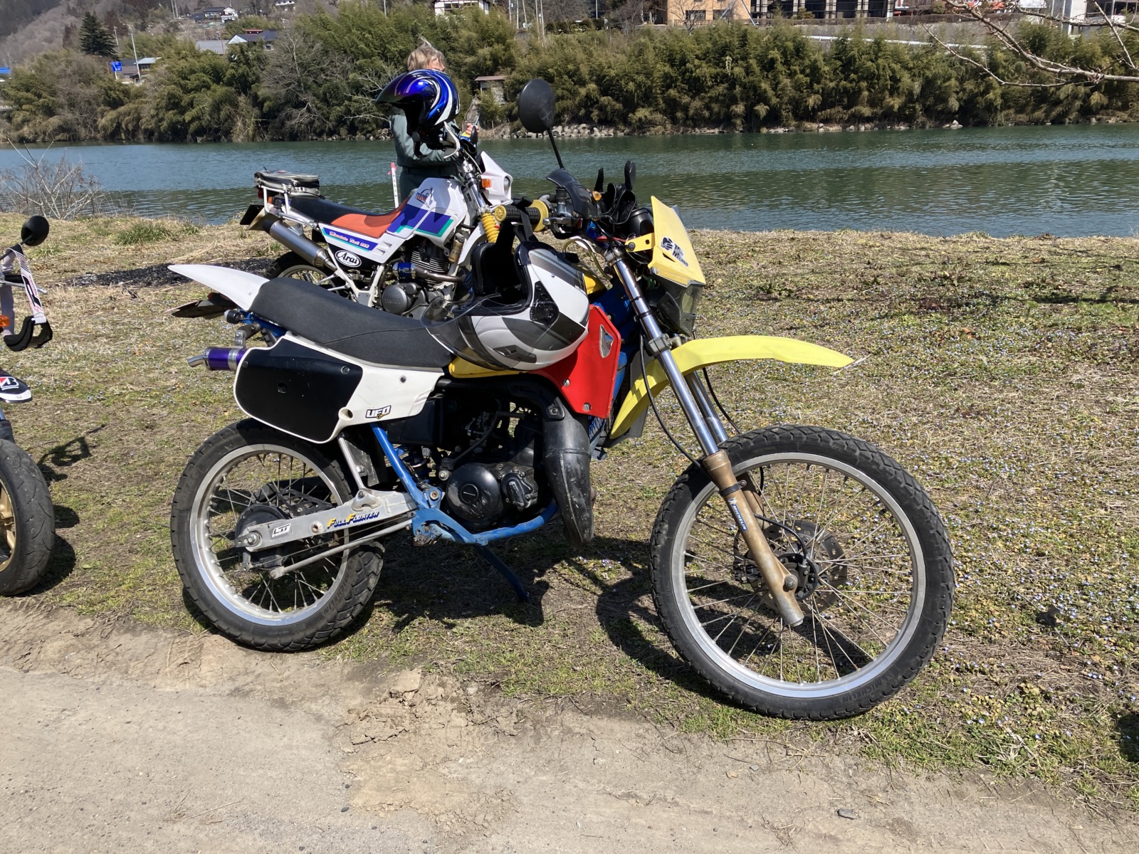 Y本さんは スズキTF125で参加。なぜか燃料タンクにヤマハの音叉マークが!?