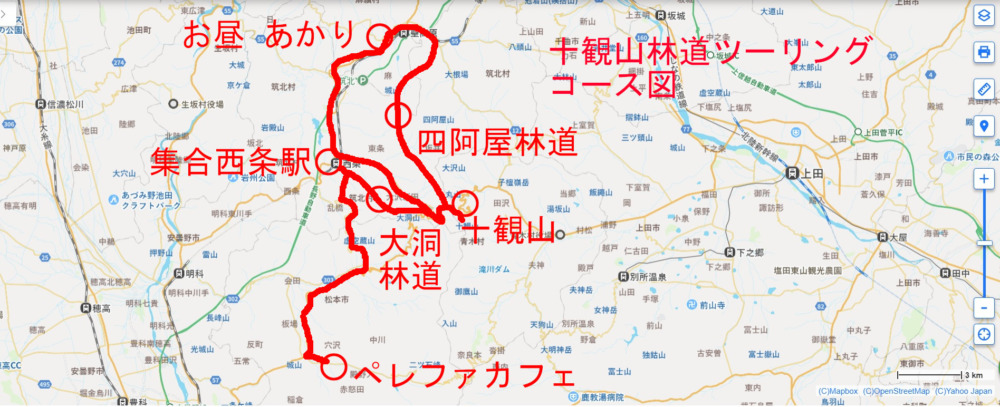 お昼の後は筑北村坂井地域から四阿屋林道へと上がり、思いっきり林道ツーリングを楽しむコースです。
