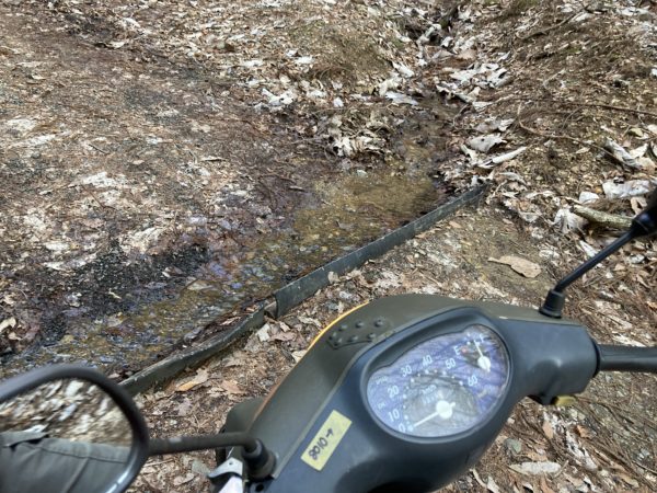 走っていると苔の緑色で石とは気が付かずにガツンとなるのです。スクーターの小さいタイヤだと衝撃が強くてひどい目に合います。