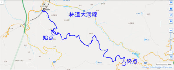 JR篠ノ井線西条駅の裏、八木(やぎ)地区を山の方へ向かってしばらく走ると林道大洞線があります。