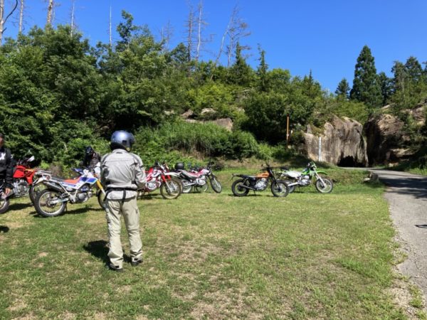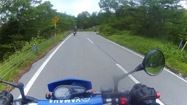 N村さんに聞いたところ、ほとんどが舗装道路との事ですが、高峰高原から湯ノ丸までの間にフラットダートがあるので皆さんオフロード車で来るとの事す。車両はセローが多いとの事でした。