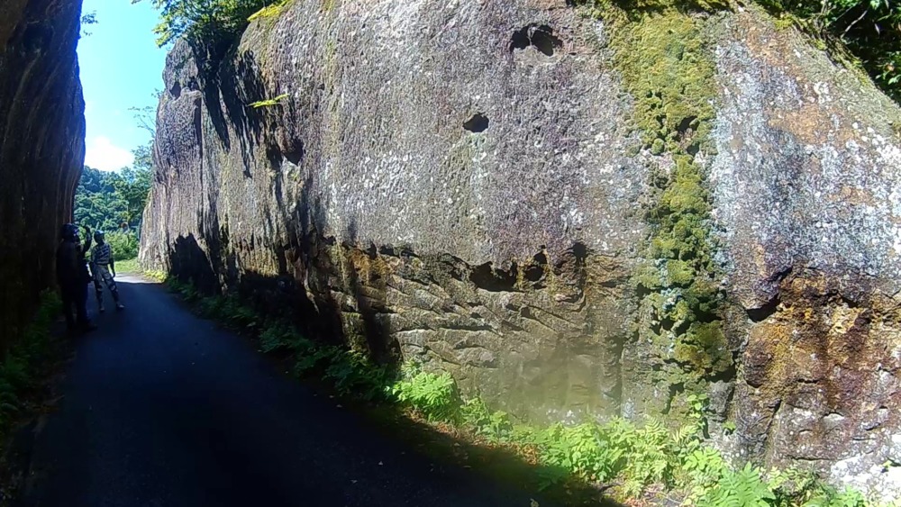 出発してすぐに善光寺街道青柳宿に入りました。ここには江戸時代の人がノミと金槌で岩を砕いて作った切通しがあるのです。